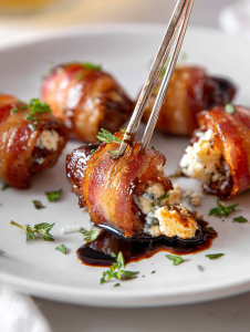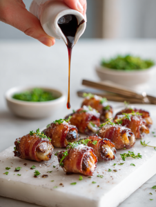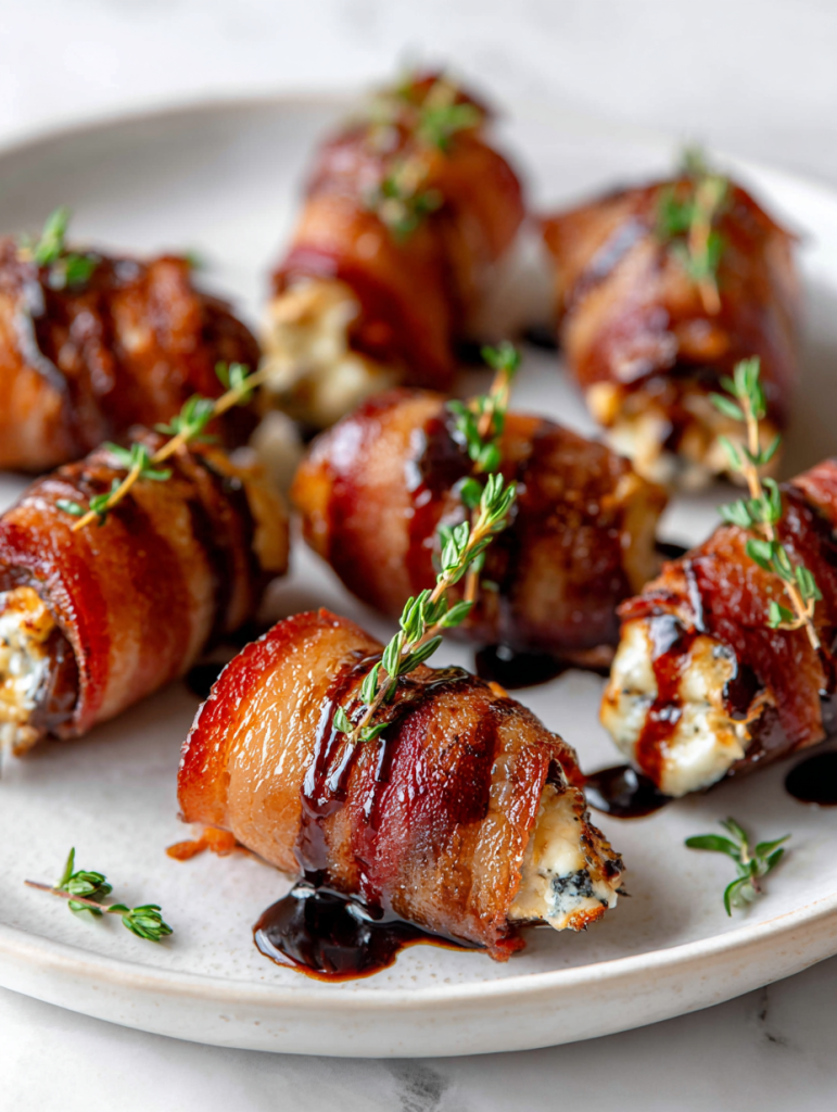 Bacon-Wrapped Dates with Cheese and Balsamic Glaze