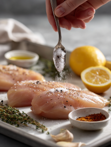 - Squeeze fresh lemon juice over the rested chicken to brighten the flavors.4 pieces boneless, skinless chicken breasts