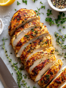 - Slice the chicken breasts and serve immediately, enjoying the juicy, tender texture with a flavorful crust.