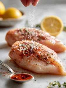Step 3: Rub the breasts with olive oil, then season generously with salt, pepper, and smoked paprika.