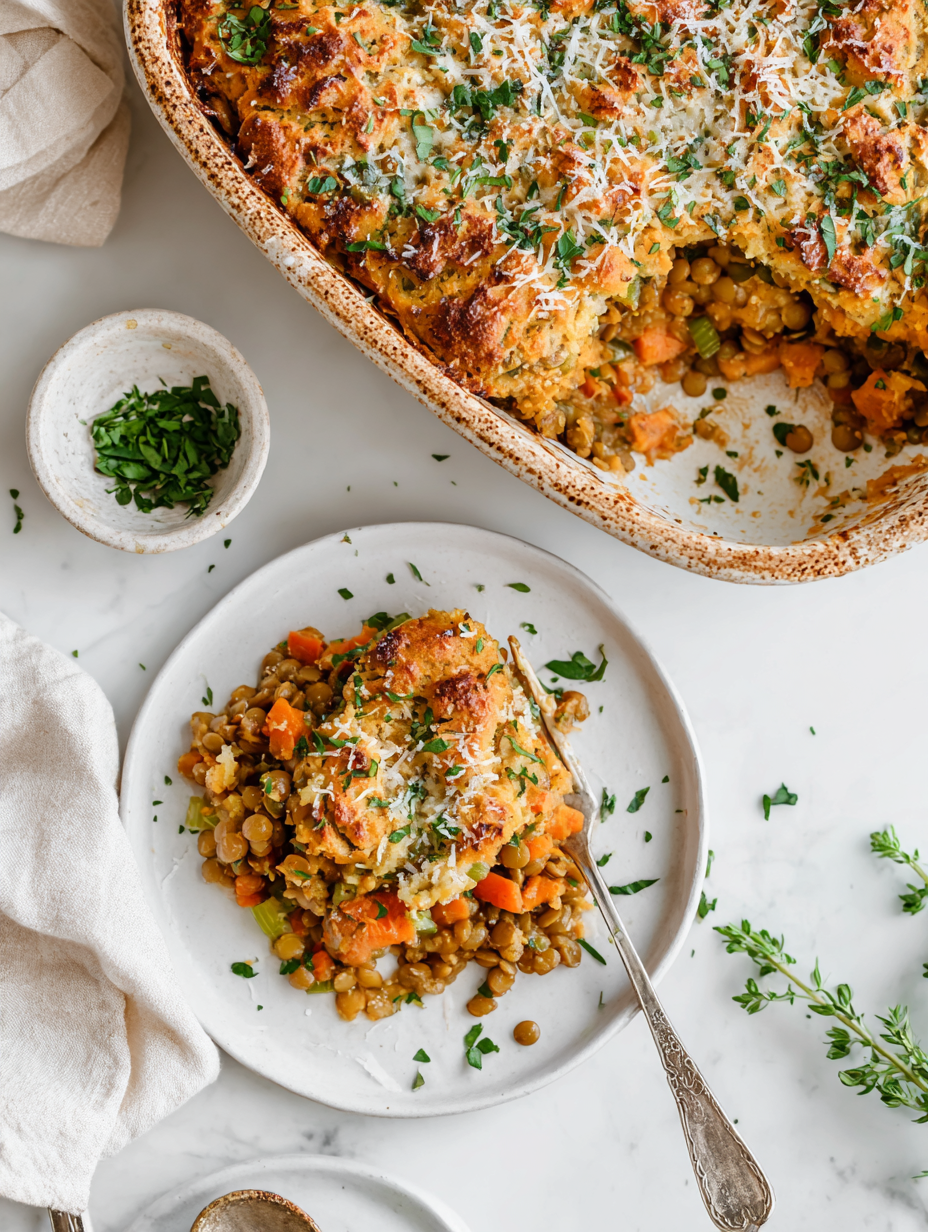 Look for lentils that hold shape, like brown or green, to keep the casserole hearty and textured.