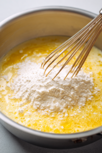- Add the flour to the melted butter and whisk vigorously for about a minute until the mixture turns a light golden color and smells slightly nutty.