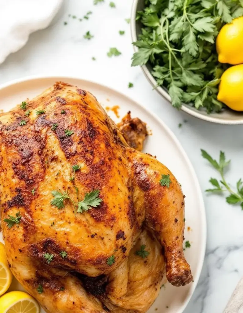 - Herbs and aromatics: Stuff the cavity with lemon halves, garlic, and thyme for brightness. Skip if you want a more neutral flavor, but the citrus really zings against the smoky skin.