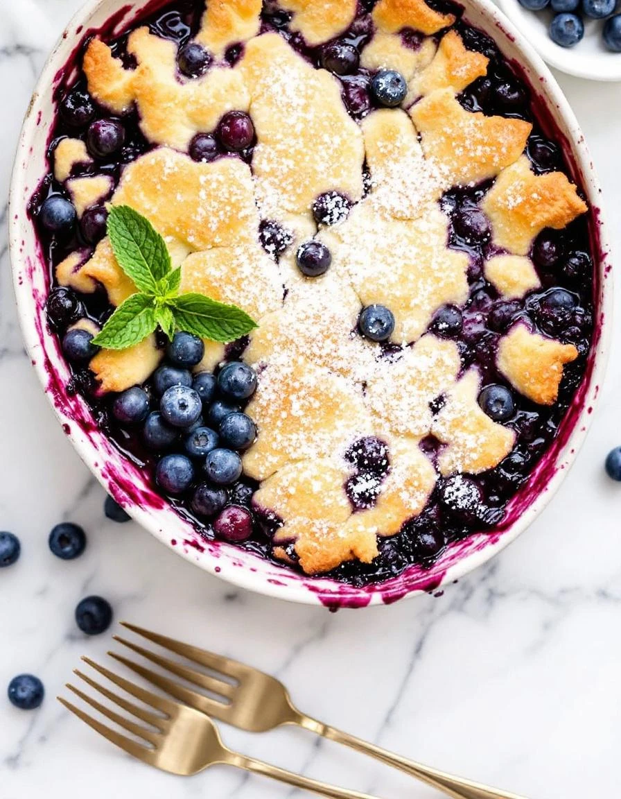 Making blueberry cobbler is about managing that sticky, juicy mess as the berries burst and drip into the pan. You’ll feel the oozy juice soak into the crumbly topping, making the whole thing a little drippy and a lot satisfying to scrape up.