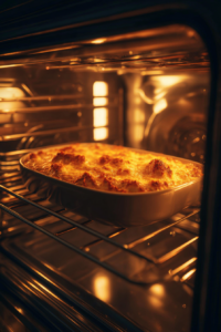 - Bake the casserole in a preheated oven at 180°C (350°F) for 25-30 minutes, until it’s bubbling around the edges and the top is golden brown.