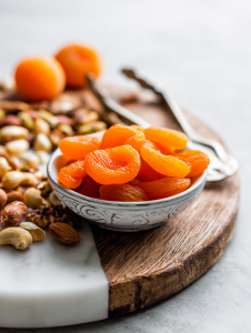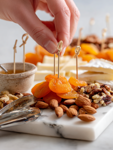 - Place dried apricots near the nuts for a sweet contrast that balances the savory elements.