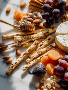 - Crunchy elements — Nuts, Crackers, Breadsticks: Add texture and contrast. Toasted almonds or pecans work well.