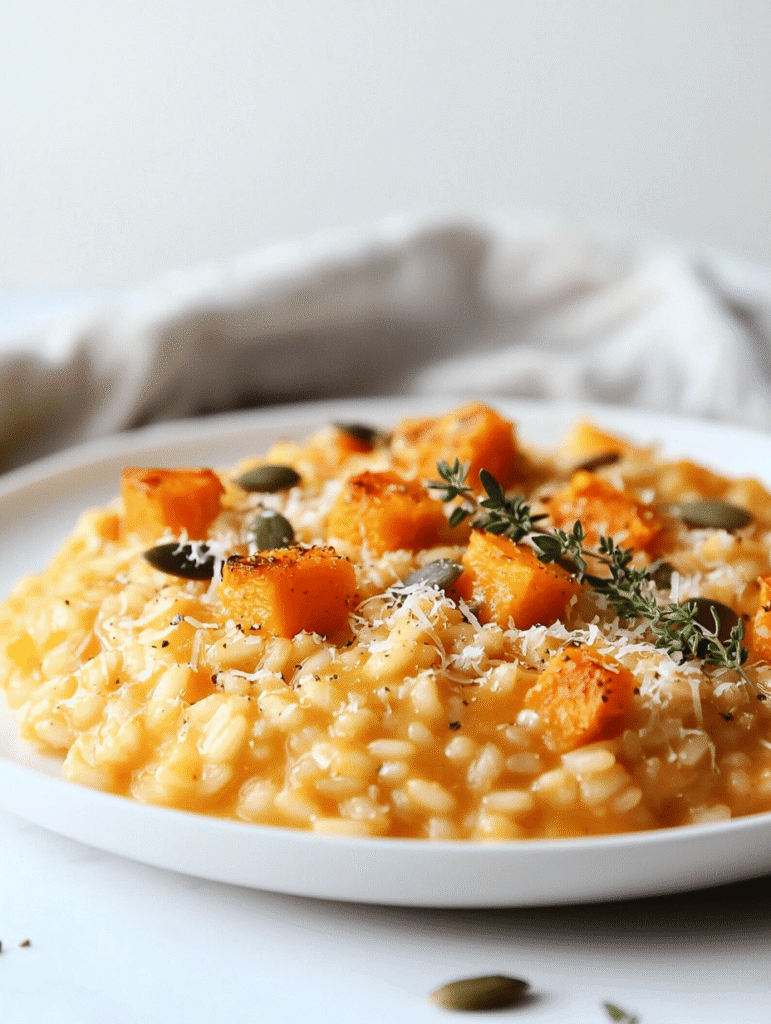 - Serve the pumpkin risotto hot, garnished with extra Parmesan or fresh herbs if desired. Enjoy the creamy, aromatic dish that’s perfect for a cozy evening.