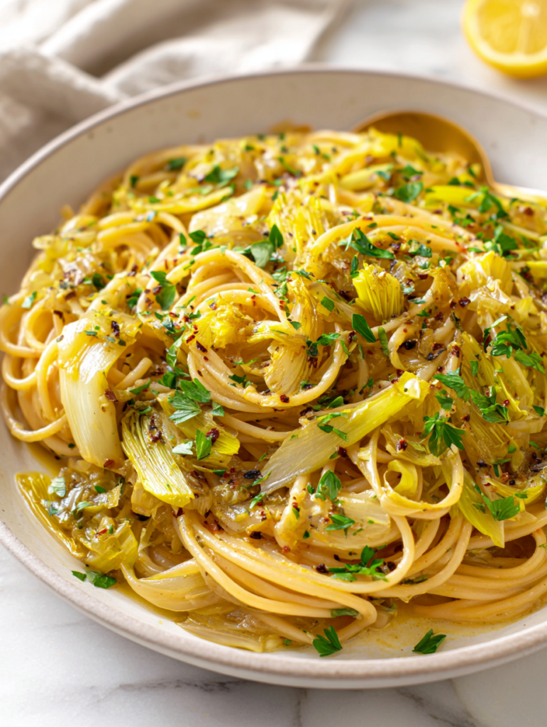 Focusing on the overlooked beauty of slow-cooked leeks and how their mellow, caramelized sweetness transforms simple pasta into a rich, soulful dish.