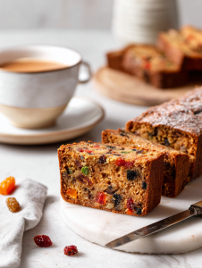 - Slice and enjoy this moist, spiced fruitcake with a cup of tea or coffee, savoring the deep flavors and cozy aroma.