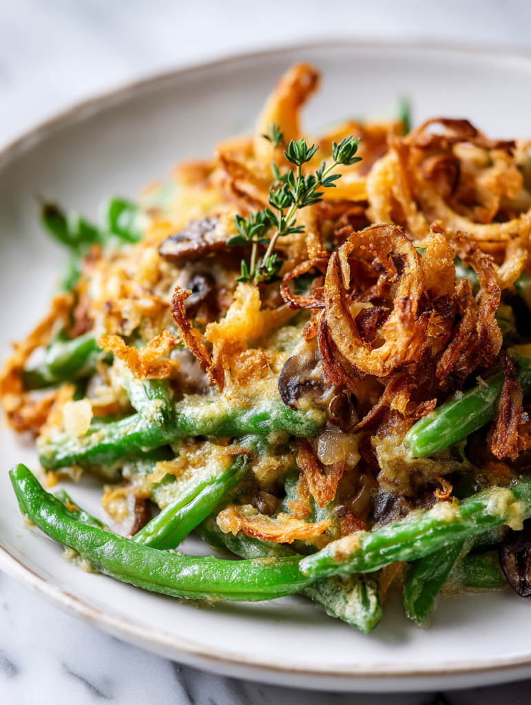 This green bean casserole has a story rooted in family gatherings and a need for simplicity that feels like a warm hug. I remember my mom pulling it out of the oven just as everyone arrived, the smell of roasted onions filling the air. Over the years, I’ve tweaked it to suit my taste—adding a little extra garlic, swapping out canned soup for homemade mushroom gravy—but the core remains the same. It’s one of those dishes that feels like home no matter how many times I make it, a comforting staple that’s evolved with me but still keeps that nostalgic spark alive.