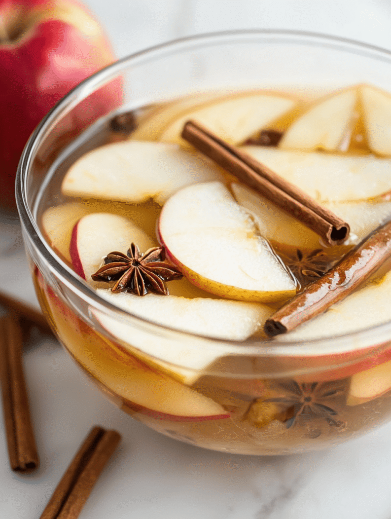 - After about 20-30 minutes, the water will reduce slightly, concentrating the fragrance, and the apple slices may become more tender with vibrant color.