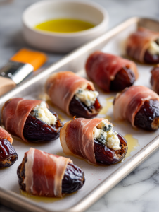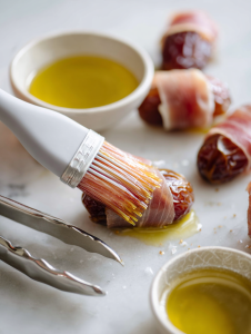 - Brush each prosciutto-wrapped date lightly with olive oil or melted butter to enhance browning and crispness.