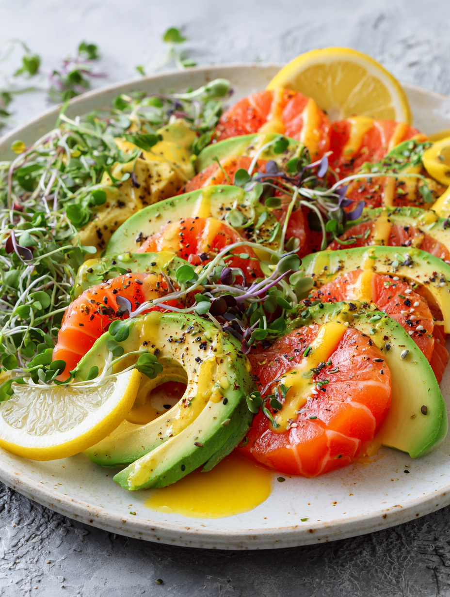 - Lemon: Brightens everything with a burst of citrus—squeeze it over the avocado and salmon for that fresh zing.
