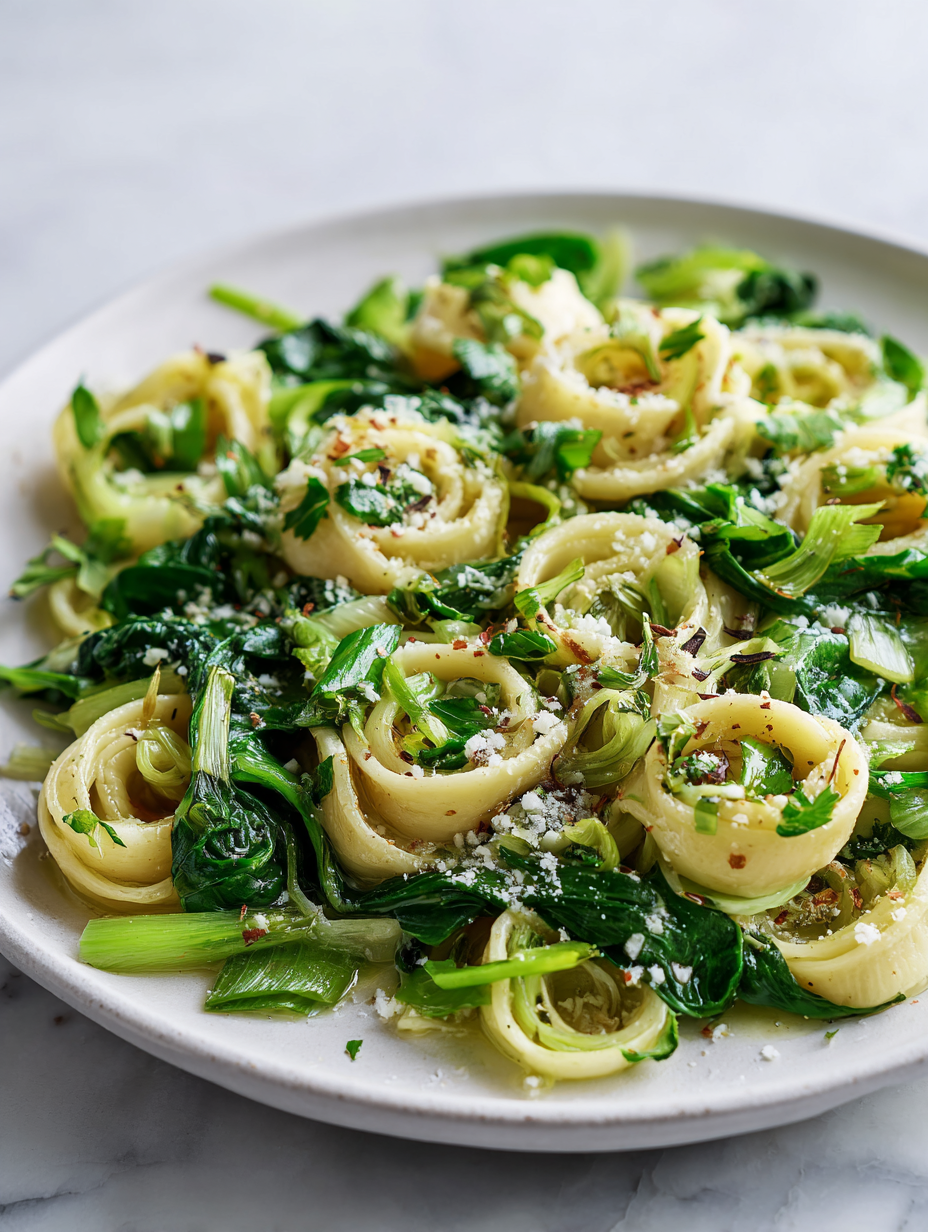 This recipe is inspired by my grandmother’s secret love for using leftover leeks and spinach from the garden, turning them into a simple, soulful pasta that feels like a warm hug on busy nights.