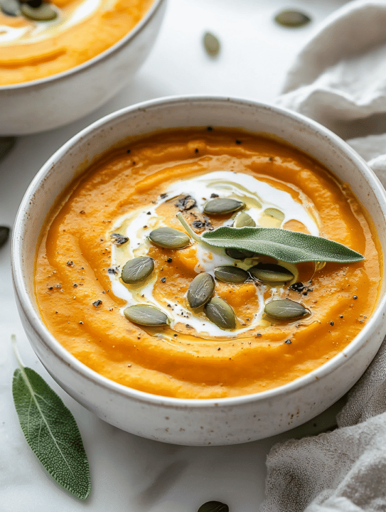 - Serve the warm soup in bowls, garnished with a drizzle of extra coconut milk or a sprinkle of toasted pumpkin seeds if desired. The soup should be smooth, vibrant orange, and fragrant, ready to enjoy.