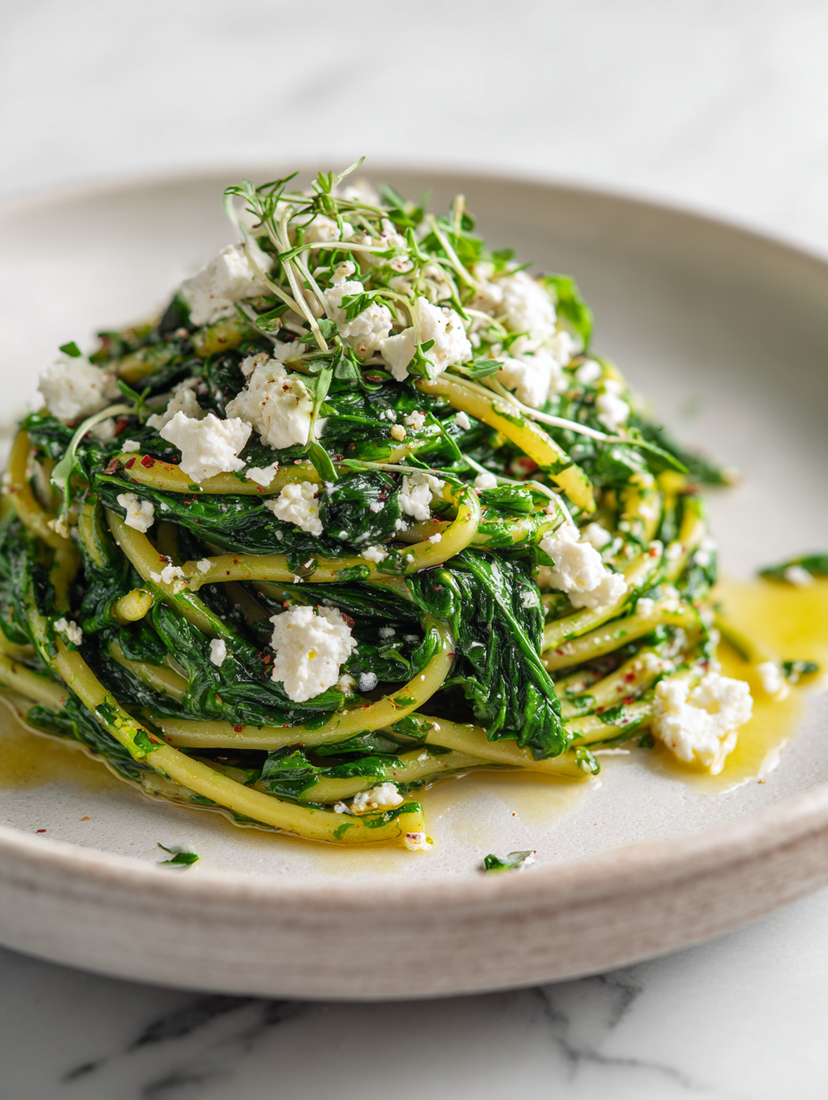 - Final touches: Taste and adjust salt if needed—remember, feta is salty. Remove from heat; the pasta should be creamy with vibrant greens.