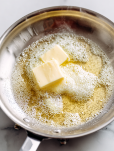 Step 2: In a skillet, melt butter over medium heat, about 2 minutes, until fragrant and slightly bubbling.