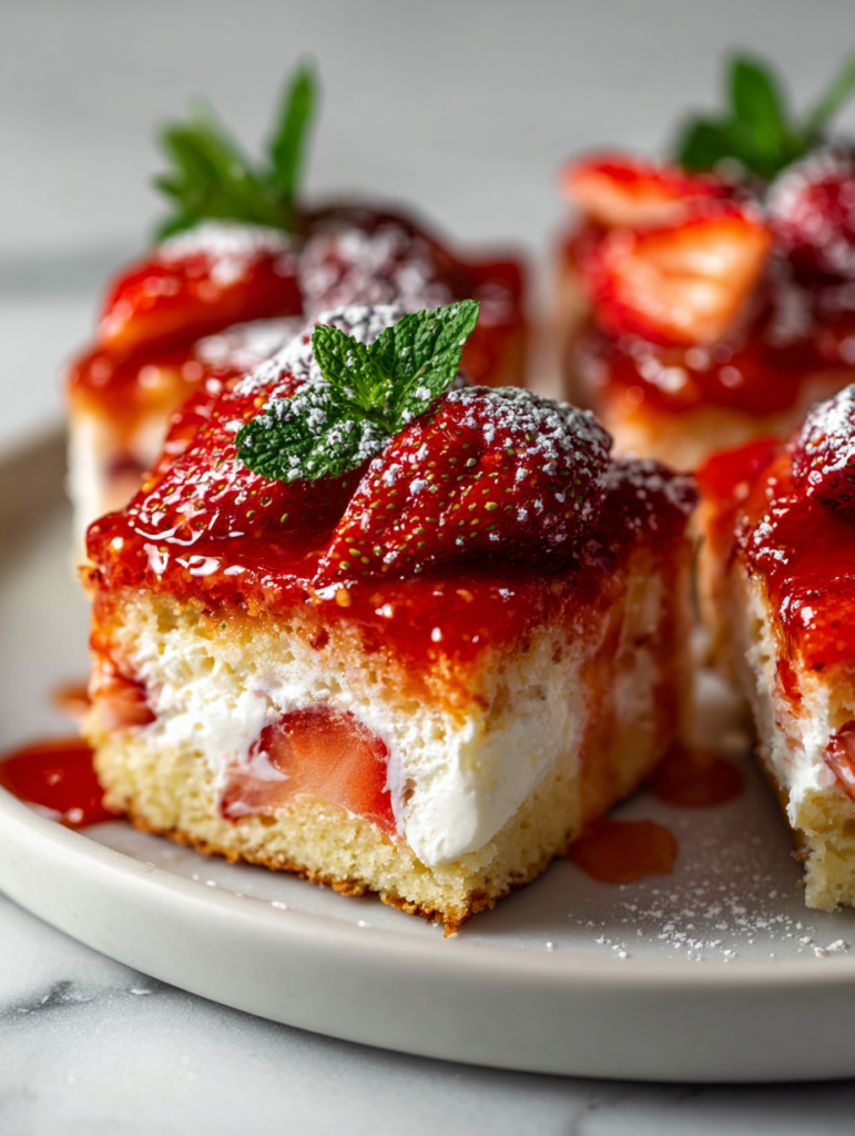 - I remember the smell of strawberries roasting with sugar filling the kitchen, sticky and bright. The first time I made it, I watched the strawberries ooze through the batter, crackling as they baked. It felt like capturing a little bit of summer’s messy joy in every slice. And now, I keep coming back to it when I want something nostalgic but a little bit reckless—like a sweet reminder that imperfect can be delicious.