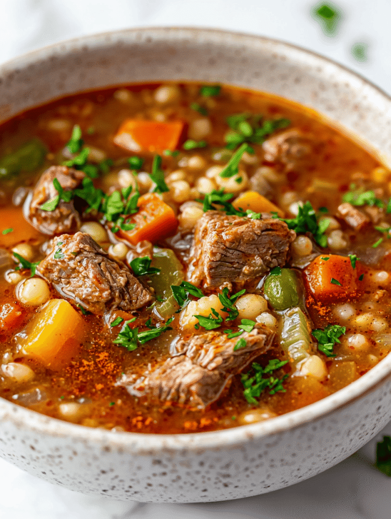 Slow Cooker Beef and Barley Soup with Smoked Paprika