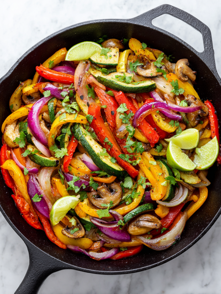 Once cooked, transfer the veggies to a warm plate. Rest for a minute to let flavors settle. Serve with warm tortillas, and garnish with fresh cilantro or extra lime if desired.